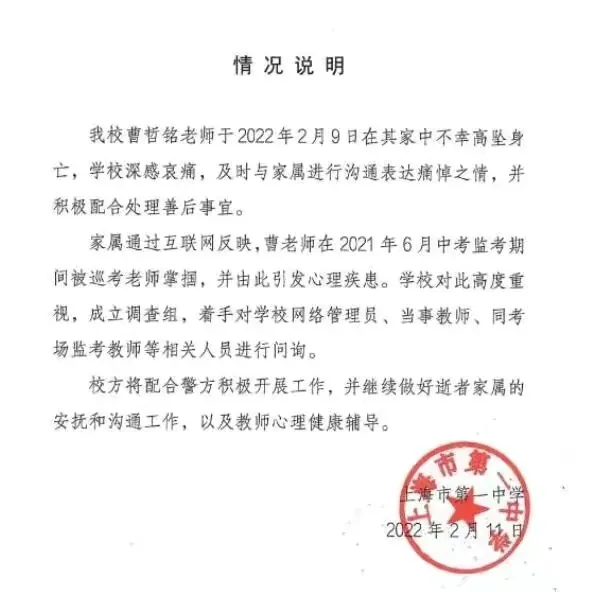 校方这个情况说明,写得非常不老实啊,首先并没有交代巡考老师的身份是学校的办公室主任,把领导打下属,模糊成了一个老师打另一个老师。